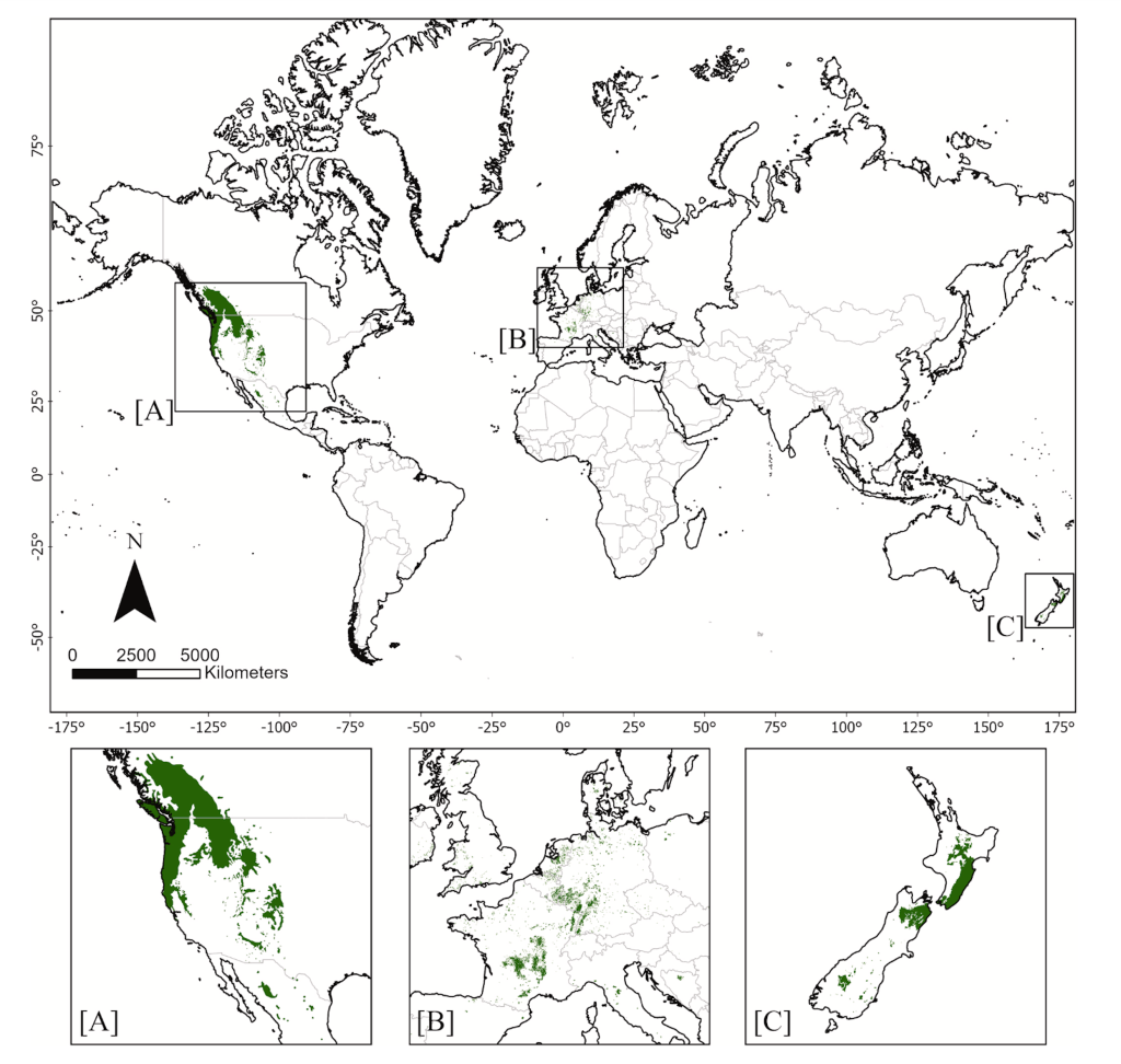 The study confirms that large parts of Europe and New Zealand are climatically suitable for Douglas-fir plantations.